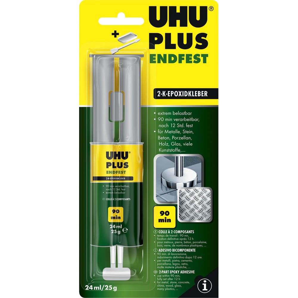 Эпоксидный клей в шприце UHU ПЛЮС 25г 45585 - двухкомпонентный продукт, не содержит растворителя. Применяется для надежного соединения металла, стекла, фарфора, дерева, резины и пластика. Вещество обладает электроизолирующими свойствами. Устойчив к кислотам, щёлочам, маслам и растворителям. Успешно выдерживает нагрузку до 300 кг/см2.