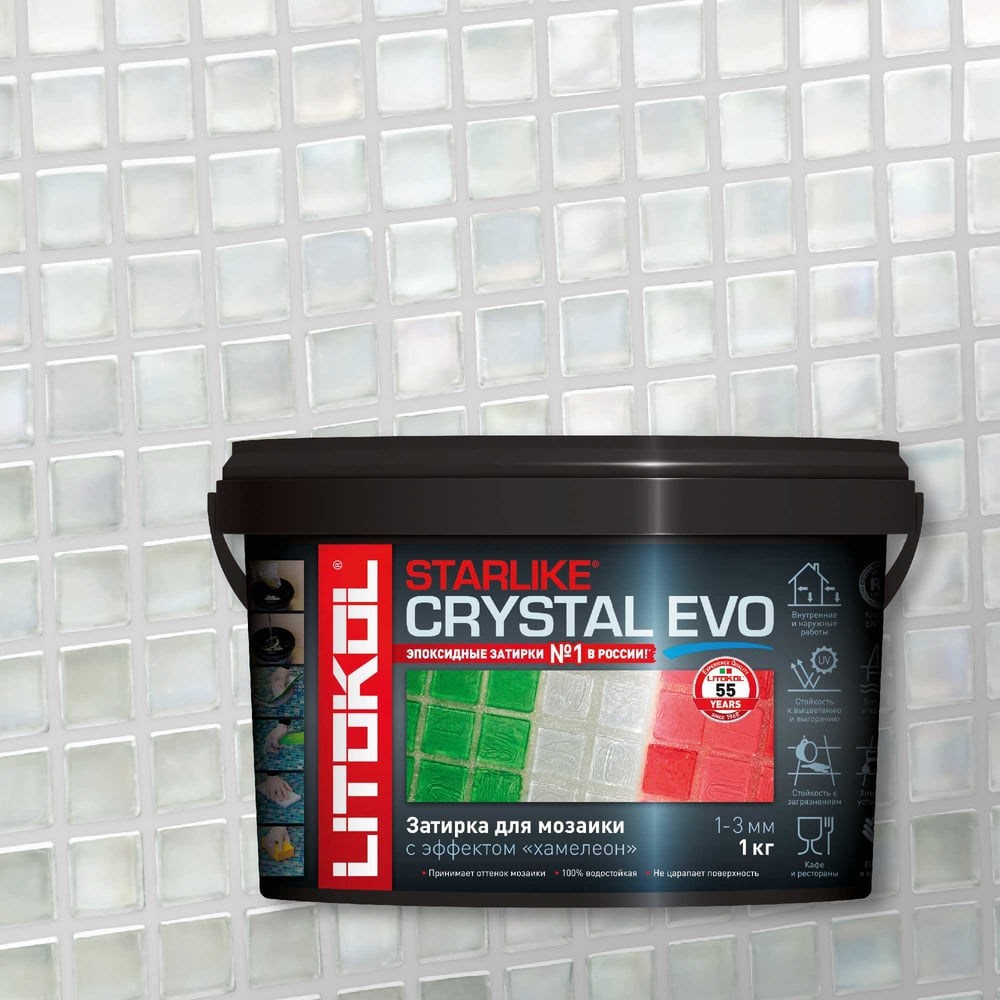 Эпоксидный состав для укладки и затирки мозаики LITOKOL STARLIKE EVO S.700 CRYSTAL 485460002 - это прозрачная двухкомпонентная эпоксидная затирочная смесь с высокой светопропускающей способностью, состоящая из стеклянных микросфер, которые позволяют поддерживать оригинальные оттенки мозаичной композиции, получая "нейтральную", бесцветную затирку, неконтрастирующую с изображением, создавая эффект "хамелеон", предназначенная для затирки швов всех типов стеклянной и художественной мозаики с шириной шва до 3 мм. Компонент А - прозрачная паста, состоящая из смеси эпоксидной смолы, наполнителей на основе стеклянных микросфер и специальных органических добавок. Компонент В - инновационный органический катализатор (отвердитель). После смешивания компонентов А и В получается удобный в работе кремообразный состав. После полной полимеризации продукт обладает непревзойденной гладкостью поверхности шва, высокой стойкостью к механическим воздействиям и превосходной химической стойкостью. Средство соответствует классу RG - затирочный состав на основе реактивных смол (R) для межплиточных швов (G) согласно классификации по EN 13888.