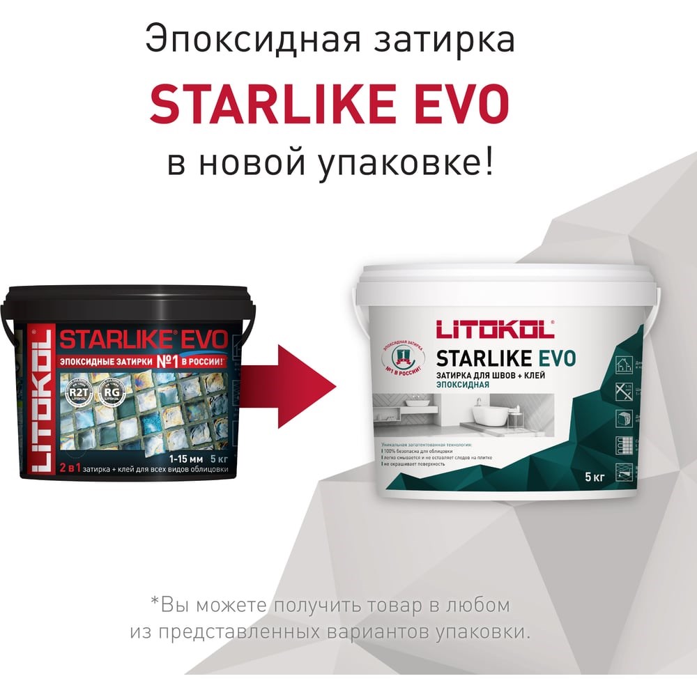 STARLIKE EVO двухкомпонентный эпоксидный кислотостойкий, щелочестойкий состав для затирки межплиточных швов с шириной шва от 1 до 15 мм и использования в качестве клея для всех видов облицовочной плитки и мозаики.Компонент А представляет собой смесь эпоксидной смолы, цветных микросфер и специальных органических добавок. Компонент В — инновационный органический катализатор (отвердитель).После смешивания компонентов А и В получается кремообразный состав удобный в работе. После полной полимеризации обладает непревзойденной гладкостью поверхности шва, высокой стойкостью к механическим воздействиям и превосходной химической стойкостью.Область применения: для внутренних и наружных работ, затирка швов, укладка плитки или мозаики, бассейны, душевые кабины, кухни, ванные комнаты и т.д.