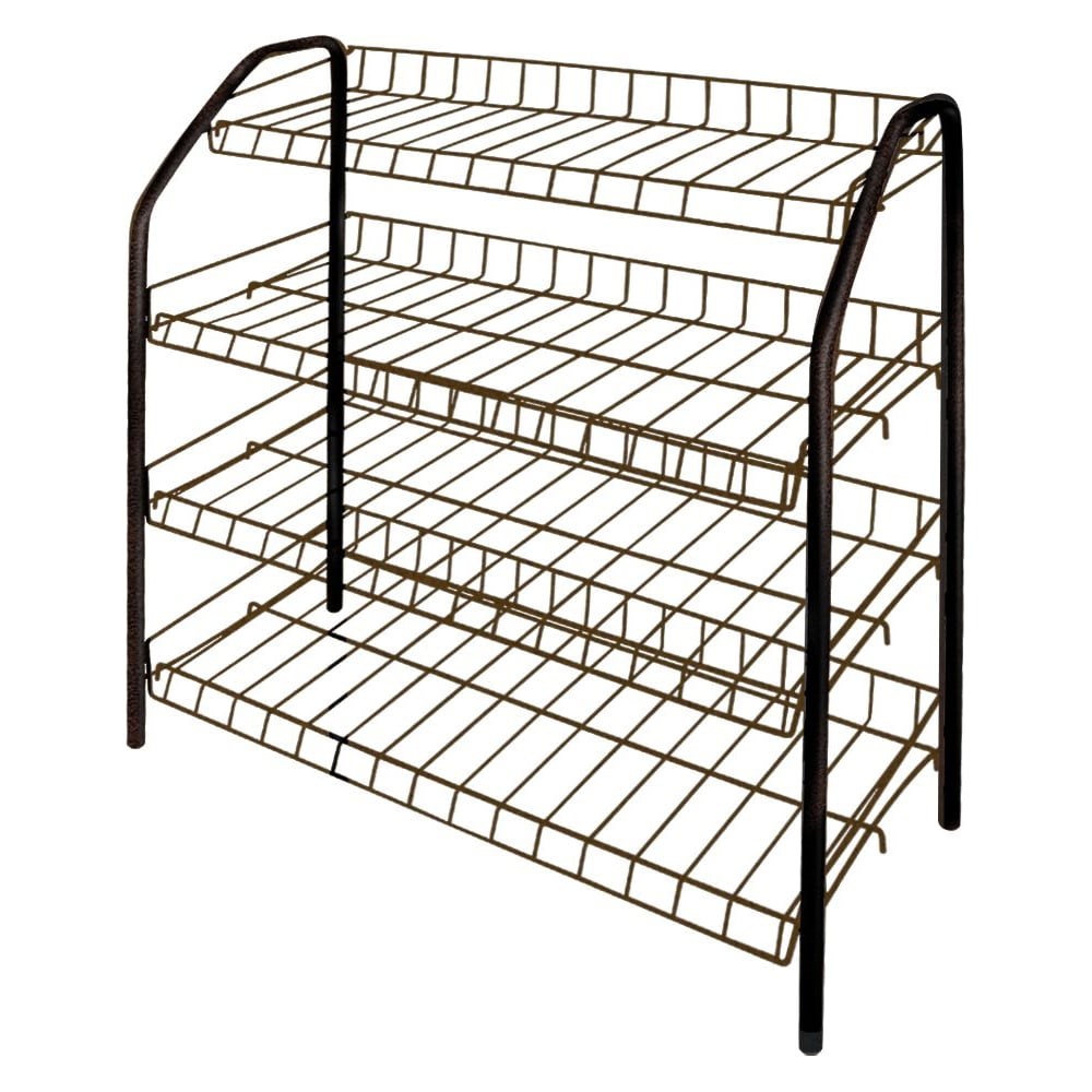 Этажерка для обуви Nika 1, 4 полки медная ЭТ1/А подходит для установки в квартиры, частные дома, а также общественные места, раздевалки. Конструкция выполнена из металла в сочетании с пластиком. Максимальна нагрузка на изделие составляет 20 кг. Этажерка имеет универсальный внешний вид, поэтому подойдет к любому интерьеру.
