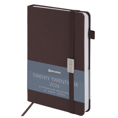 Ежедневник датированный 2026, А5, 138x213 мм, BRAUBERG "Control", под кожу, держатель для ручки, коричневый, 117122