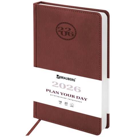 Ежедневник датированный 2026, А5, 138x213 мм, BRAUBERG "Favorite", под кожу, коричневый, 117035