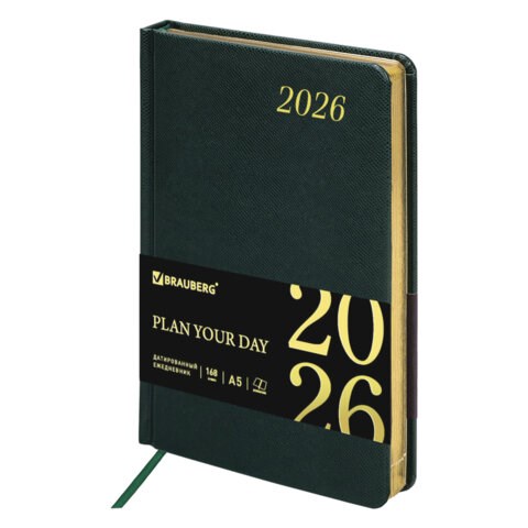 Внутренний блок включает 168 листов тонированной бумаги плотностью 70 г/м2. Каждая страничка имеет перфорированный угол. Благодаря стандартному формату А5 (138х213 мм) ежедневник удобно использовать как в офисе, так и на выездных деловых встречах. Твердая обложка стилизована под кожу рептилии благородного темно-зеленого цвета. Подходит для горячего тиснения. Срез ежедневника фольгирован золотой фольгой, что придает ему особый шарм. Дополнением является закладка-ляссе, с помощью которой при необходимости можно быстро открыть ежедневник на нужной странице.