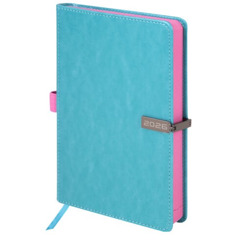 Ежедневник датированный 2026 А5 138x213 мм, BRAUBERG "Inspiration", под кожу, цветной срез, бирюза, 117476