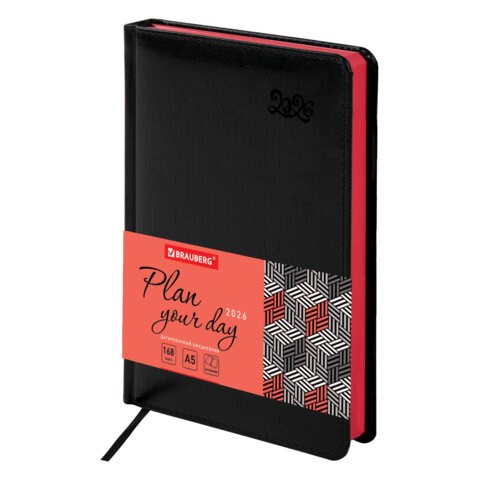 Внутренний блок включает 168 листов белой бумаги плотностью 70 г/м2. Каждая страничка имеет перфорированный угол. Благодаря стандартному формату А5 (138х213 мм) ежедневник удобно использовать как в офисе, так и на выездных деловых встречах.