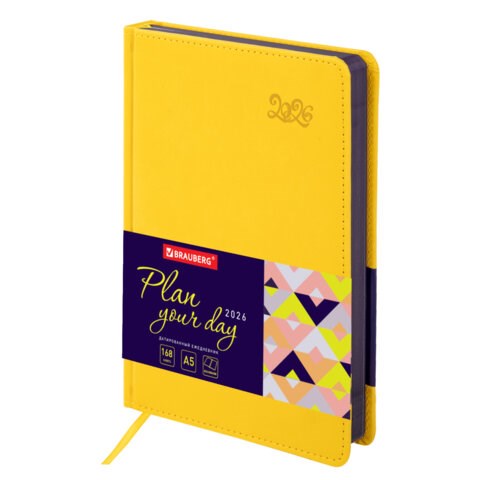 Ежедневник датированный 2026, А5, 138x213 мм, BRAUBERG "Rainbow", под кожу, желтый, 117082