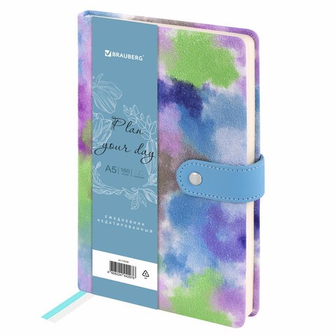 Ежедневник недатированный А5 138х213 мм BRAUBERG "Nebula", под кожу, застежка 160 л., синий микс, 116238