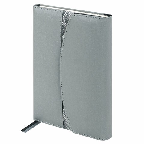 Твёрдая обложка с блёстками подходит для горячего тиснения, фиксируется магнитным клапаном, поэтому ежедневник не откроется в сумке или портфеле и страницы не помнутся. Анималистичный принт придает ему особый шарм. Дополнением служат 2 закладки-ляссе, с помощью которых можно быстро найти нужную страницу. Кроме того, ежедневник снабжен обширным справочным материалом. Этот ежедневник порадует наличием держателя для ручки, небольшого зеркальца и пилки для ногтей.