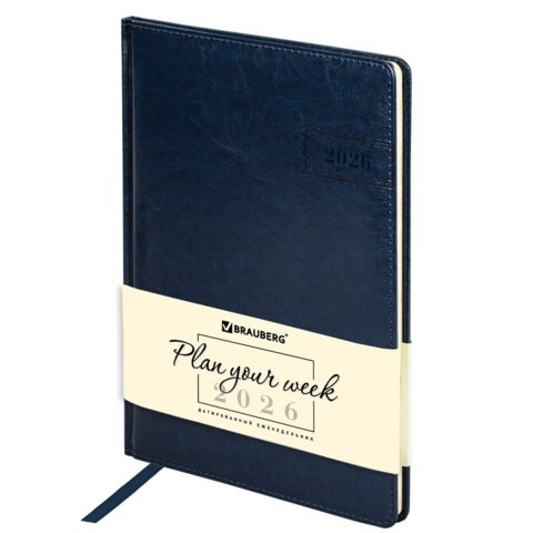 Еженедельник датированный 2026, БОЛЬШОЙ ФОРМАТ 210х297 мм, А4, BRAUBERG "Imperial", под кожу, синий, 117157
