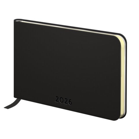 Внутренний блок включает 64 листа тонированной бумаги плотностью 70 г/м2. Благодаря малому формату А6 (105х160 мм) еженедельник удобно использовать как в офисе, так и на выездных деловых встречах. Гибкая обложка черного цвета, стилизованная под гладкую кожу, подходит для горячего тиснения.