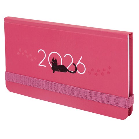 Еженедельник датированный 2026 с резинкой 171х93 мм, BRAUBERG, твердый, УФ-ЛАК, 64 л., "Кот", 117349