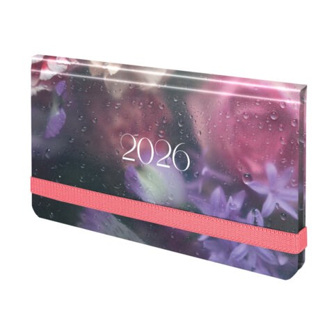 Еженедельник датированный 2026 с резинкой 171х93 мм, BRAUBERG, твердый, УФ-ЛАК, 64 л., "Цветы", 117348