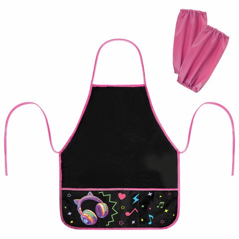 Фартук с нарукавниками для уроков труда BRAUBERG, 3 кармана, 46x54 см, "Headphones", 273643