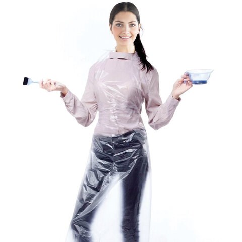 Фартуки изготовлены из полиэтилена плотностью 16 мкм. Имеют оптимальную толщину для комфортной работы. Размер - 68х110 см. Цвет - белый. Поставляются в пакете в количестве 100 штук.