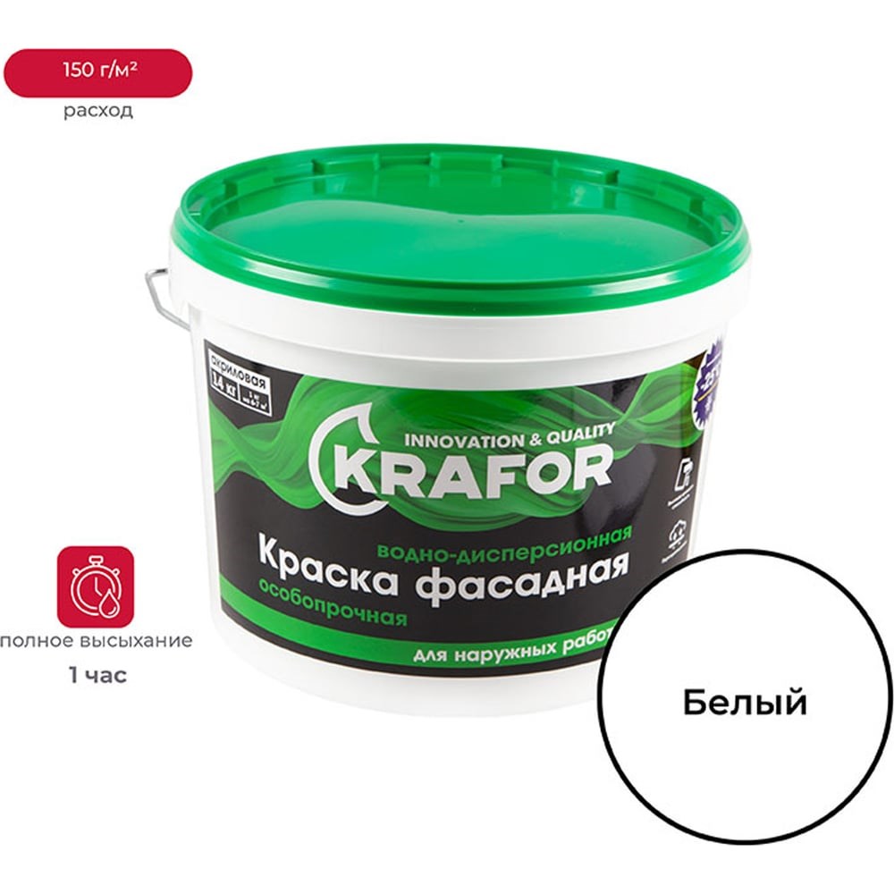 Предназначена для окрашивания минеральных поверхностей: известково-цементных, цементных, гипсовых штукатурок, бетона, кирпича, асбоцемента, деревянных и ранее окрашенных (но не глянцевых) оснований, подвергающихся атмосферным воздействиям. Возможно использование внутри помещений с жесткими эксплуатационными нагрузками, для получения особопрочных покрытий устойчивых к влажной уборке и мытью с использованием моющих средств. Краску можно колеровать универсальными колеровочными пастами. Расход: ориентировочный расход на однослойное покрытие поверхности площадью 1 м2 составляет от 150 до 170 г в зависимости от типа, состояния и структуры основания. Высыхание: 2 часа. Срок годности: 730 дней. Белый Краска фасадная особопрочная водно-дисперсионная акриловая - высокопрочная; - атмосферостойкая; - готова к применению; - паропроницаемая; - легко наносится; - устойчива к атмосферным воздействиям; - допускается ремонтное перекрашивание; - морозостойкая; - экологически безопасная. Краску можно колеровать в различные цвета и оттенки.
