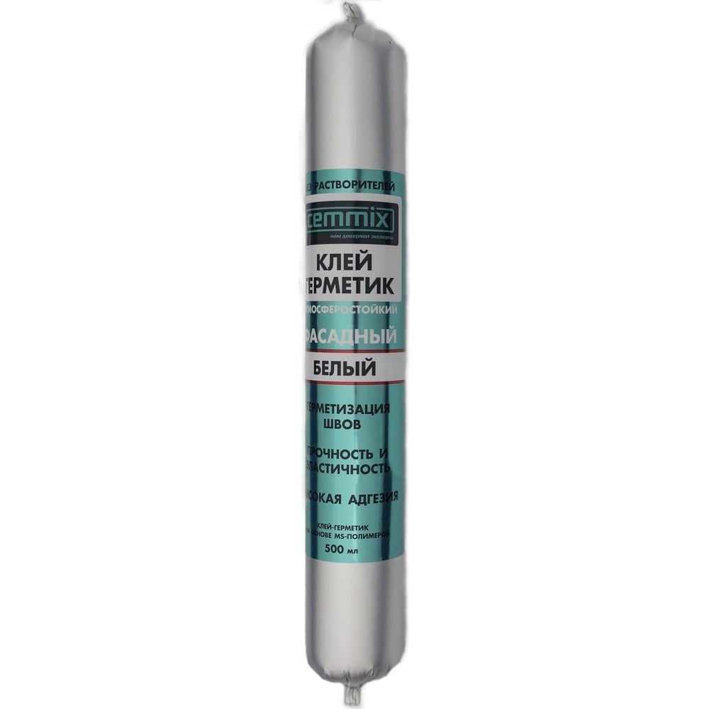 CEMMIX Фасадный клей-герметик - постоянно эластичный однокомпонентный герметик на основе гибридных полимеров для склеивания и герметизации трещин, зазоров деформационных и температурных швов шириной до 20 мм. Подходит для большинства строительных материалов: бетон, кирпич, натуральный камень (мрамор, гранит и т.п.), металл. Применяется для соединения элементов в конструкциях, подвергающихся вибрациям, для креплений теплоизоляционных плит, а также для герметизации мест, подвергающихся постоянному воздействию воды. Пригоден для герметизации стыков кровельного покрытия и металлических фартуков. Твердеет быстрее, чем полиуретановые герметики. Атмосферостойкий. Возможно применение при отрицательных температурах и нанесение на влажные материалы. Герметик не содержит растворителей и потому не даёт усадку после полимеризации. Клей-герметик удовлетворяет требованиям ТУ 20.30.22-003-90557835-2018.Применениезаполнение и герметизация швов и зазоров в промышленных полах, стенах и других вертикальных и горизонтальных поверхностях;герметизации мест, постоянно находящихся под водой;герметизация и гидроизоляция швов сэндвич-панелей;уплотнение соединений в кирпиче, керамической плитке, бетонных плитах, натуральных камнях, металлических поверхностях;кровельные уплотнения мест, требующих гидроизоляции;одинаково подходит для внутренних и наружных работ.