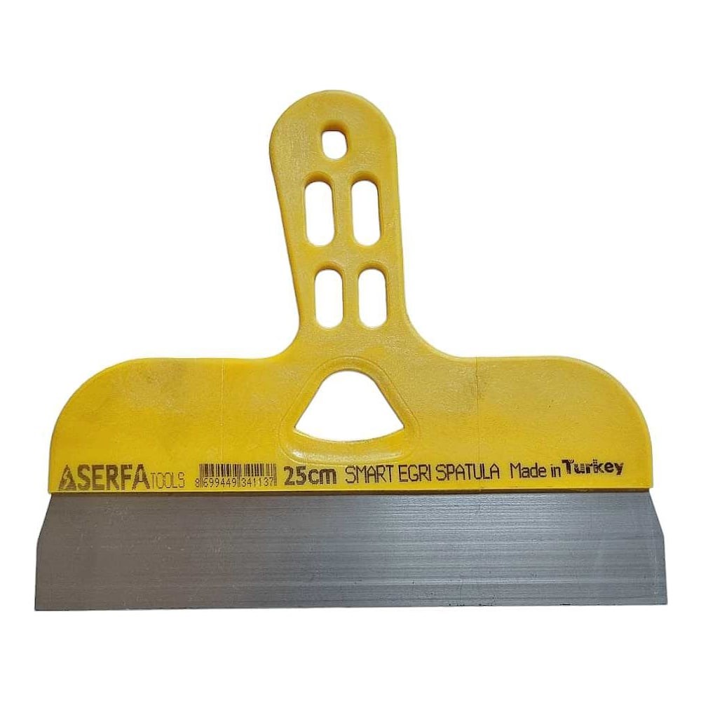 Фасадный шпатель SERFA с пластиковой изогнутой рукояткой предназначен для нанесения и равномерного распределения штукатурных либо шпаклевочных масс на различных поверхностях. Изготовлен из качественной пружинной стали.