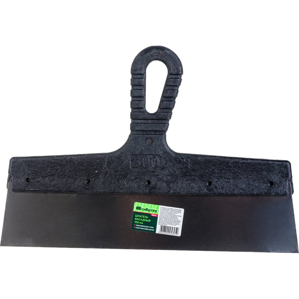 Фасадный шпатель 300 мм СИБРТЕХ 85442 используется для нанесения и равномерного распределения строительных смесей на различных поверхностях. Подходит как для внутренней, так и для наружной отделки. Инструмент состоит из рифленой отогнутой рукоятки и стального рабочего полотна. Шпатель отличается повышенным рабочим ресурсом, его ручка выполнена из ударопрочной пластмассы, а лезвие - из нержавейки.