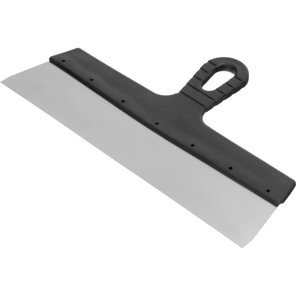 Шпатель фасадный Сибртех 85446 с полотном шириной 350 мм из нержавеющей стали и пластмассовой ручкой рассчитана на нанесение, выравнивание и сглаживание строительных растворов и смесей. Актуальна при проведении ремонтно-отделочных работ, подходит для начинающих и профессиональных мастеров.