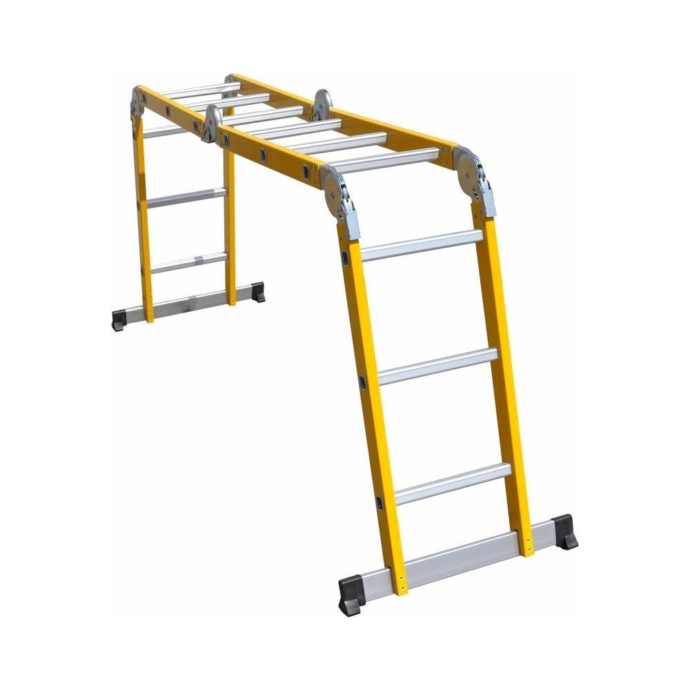 Фибергласовая лестница-трансформер SevenBerg 4x3 F 140443 - отличный помощник для монтажников и электриков. Многофункциональность. Может использоваться как стремянка, подмость, г-образная и приставная лестница. Трансформация производится путем фиксации замков. Минимальный размер в сложенном виде позволяет транспортировать лестницу-трансформер в легковом автомобиле.