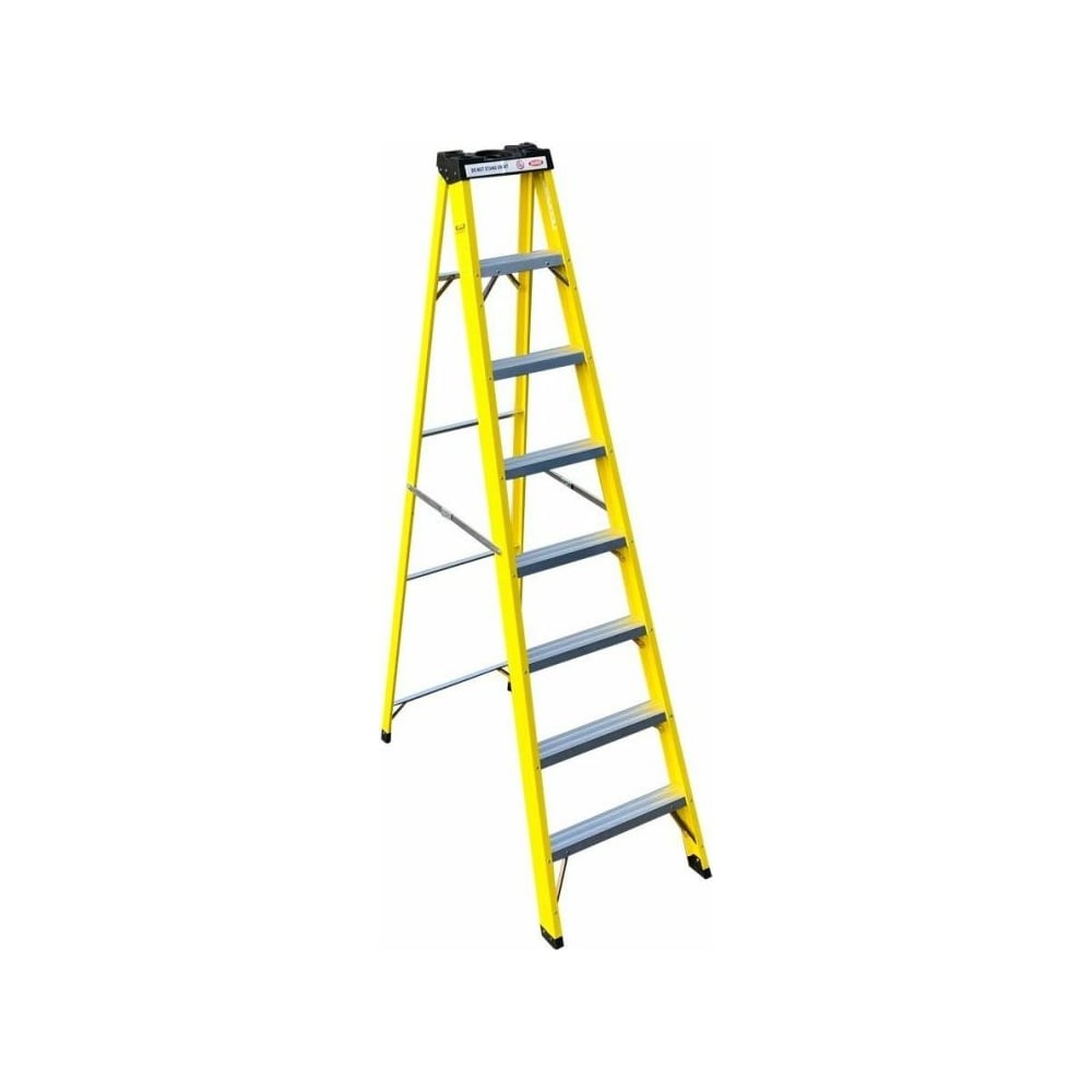 Фиберглассовая стремянка SevenBerg 7 ступеней Ф-107 выполнена из фиберглассового П-образного профиля желтого цвета 1-ая секция 78х30 мм, 2-я - 45х30 мм. Толщина профиля 4 мм. Модель может использоваться как изолирующая стремянка, обладает всеми диэлектрическими свойствами Для удобства работы предусмотренна полочка для инструментов размером 0.13х0.32 м. Особая прочность и долговечность лестницы обеспечиваются применением стального крепежа с гальваническим покрытием. Лестница в рабочем положении фиксируется парными стальными стяжками-перемычками, что обеспечивает безопасность использования.