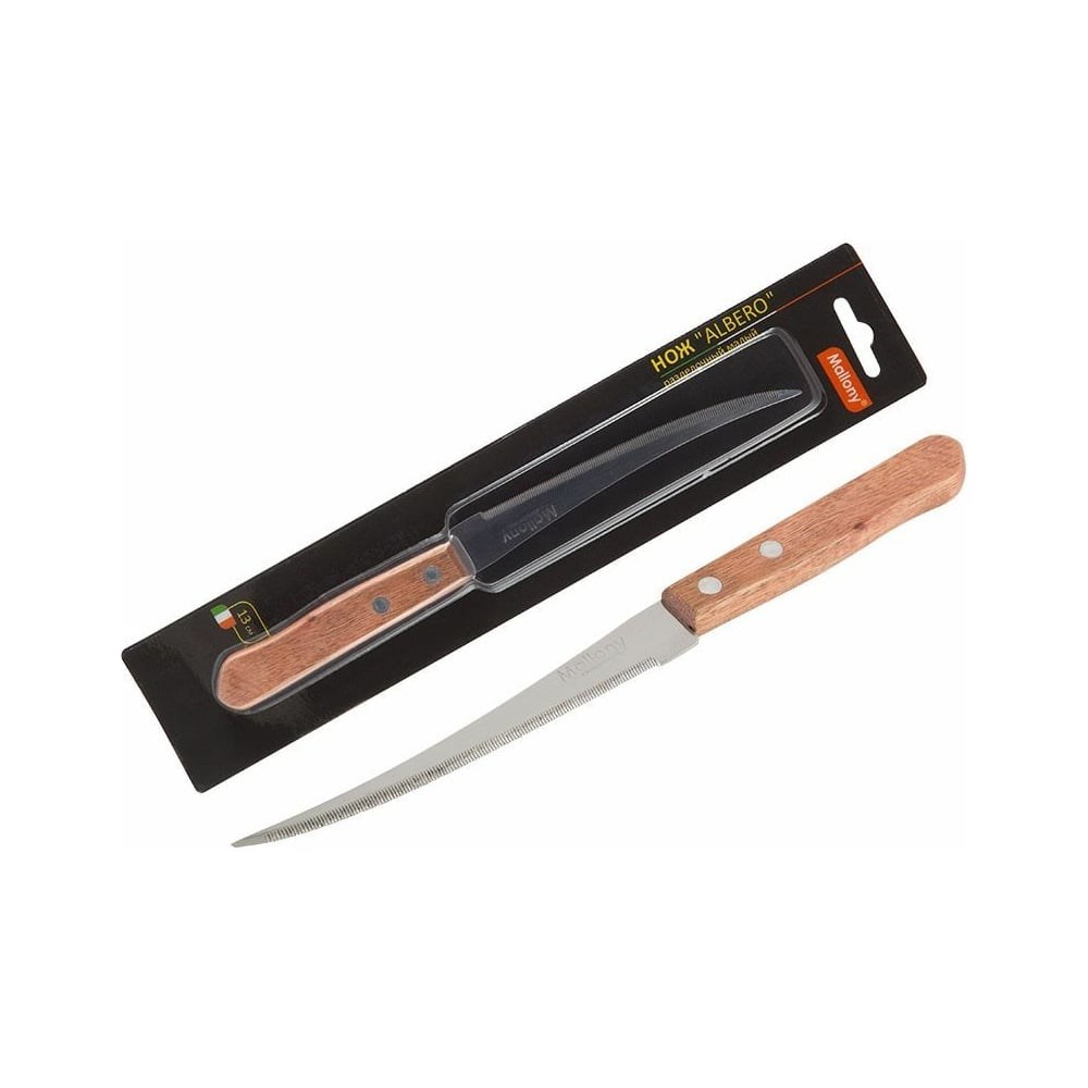 Нож с деревянной рукояткой Mallony ALBERO MAL-04AL филейный, 13 см 005169 предназначен для бытовой и профессиональной эксплуатации. Нож изготовлен из прочной стали. Толщина клинка составляет 1 мм. Нож имеет стильный дизайн. Ручка из дерева не скользит во время работы.