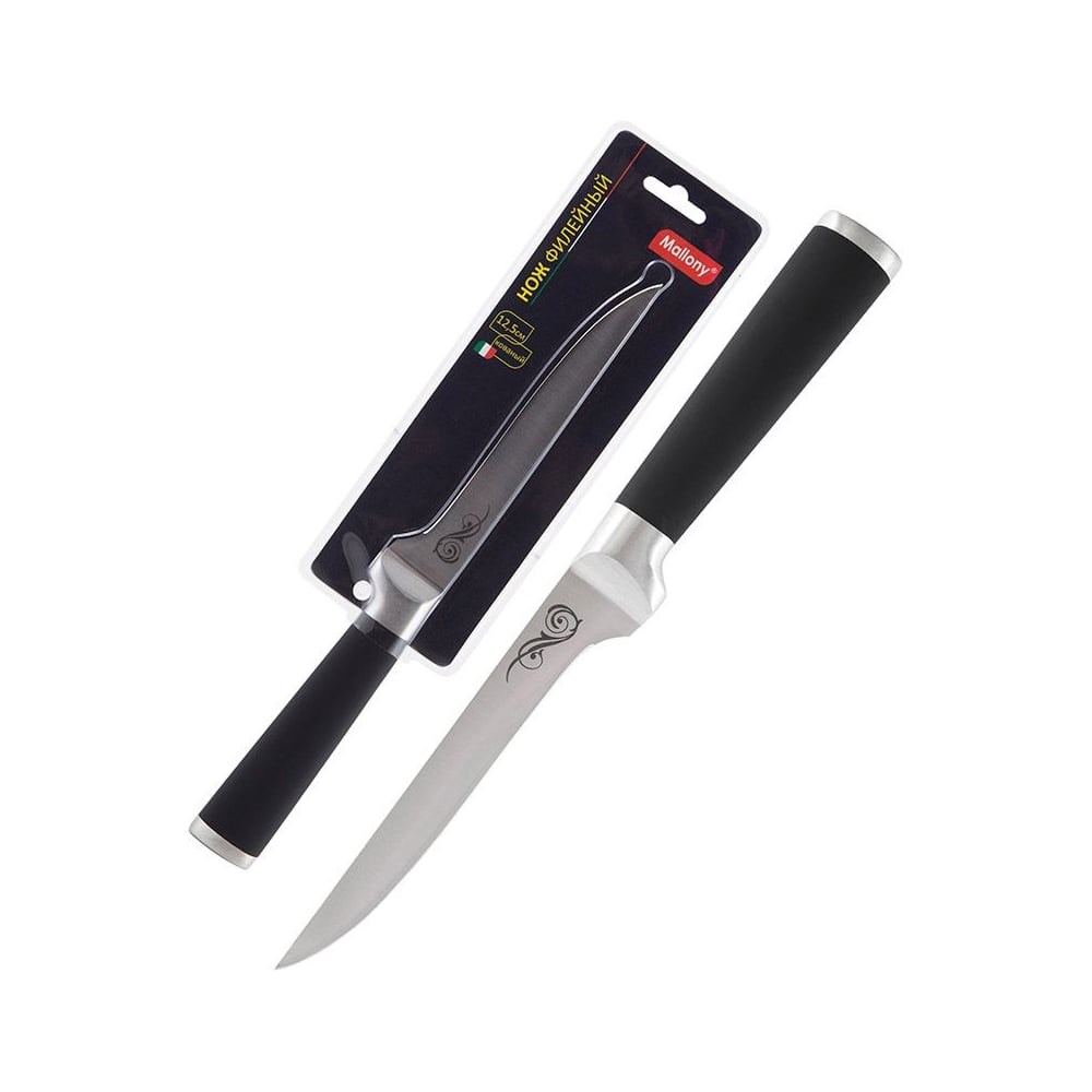 Нож с прорезиненной рукояткой MAL-04RS филейный.Длина лезвия: 12,5 см Толщина лезвия: 2,25 мм Ручка стальная (НЕ полая внутри) с прорезиненным покрытием soft touch. Материал: нержавеющая сталь (3CR13),ТПР