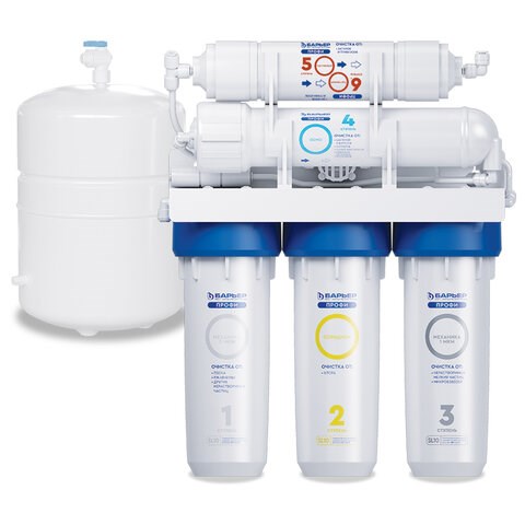 4. БАРЬЕР ПРОФИ Осмо 100. Обратноосмотическая мембрана производительностью в 100 галлон (? 288 литров в сутки) из тонкопленочного полиамидного композита. Очищает воду на молекулярном уровне от различных солей, хлоридов, фторидов, сульфатов, нитратов, ионов металлов, высокомолекулярных органических соединений и различных микроорганизмов. Все вредные примеси смываются в дренаж. Рекомендуемая частота замены — раз в 12-18 месяцев