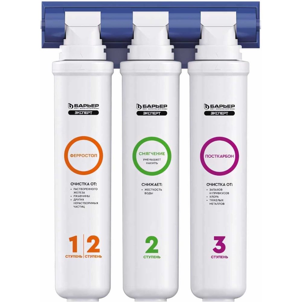 Картридж в комплектеБАРЬЕР ЭКСПЕРТ Ферростоп, БАРЬЕР ЭКСПЕРТ Смягчение, БАРЬЕР ЭКСПЕРТ Посткарбон