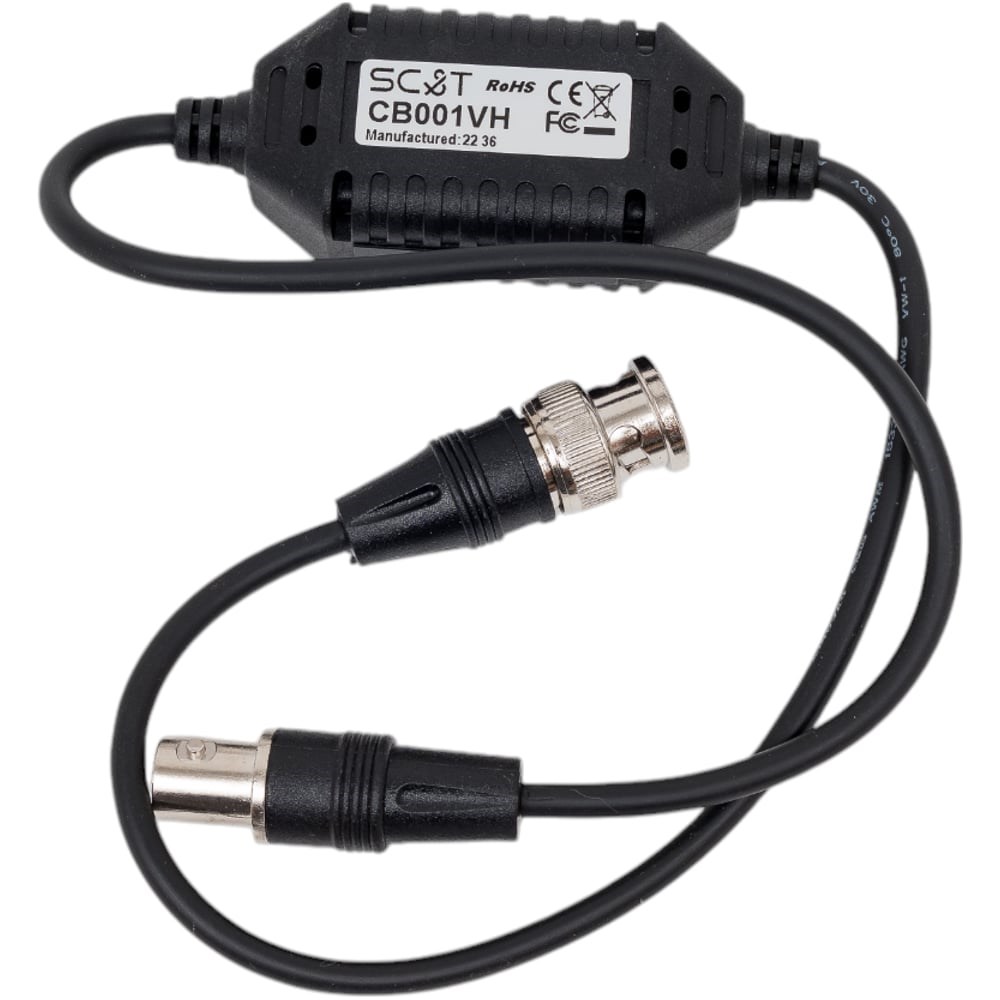 SC&T CB001VH - фильтр помех, устройство согласования для коаксиального кабеля, предназначено для устранения помех, вызванных плохим согласованием сопротивления участков кабельных линий и кабельных линий с оборудованием. Пассивный - не требует питания. Вход/выход: BNC-штеккер/BNC-розетка. Устанавливается в местах соединения линий коаксиального кабеля и местах подключения кабельных линий к оборудованию. Защищает от помех, вызванных радиосигналами, другими видеосигналами, близкорасположенными силовыми кабелями, телефонными аппаратами, флуоресцентными лампами, трансформаторами и т. д.