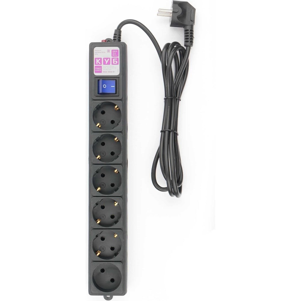 Фильтр-удлинитель Power Cube предназначен для подключения электроприборов различного назначения к электрической сети переменного тока, напряжением до 250В номинальной частоты 50Гц. 6 розеток (5 розеток с заземлением + 1 розетка без заземления). Двуполюсный выключатель со световой индикацией включения. (полностью размыкает цепь питания). Материал корпуса: негорючий пластик. Литой стопор на проводе надежно удерживает шнур питания и защищает провод от излишних перегибов. Токоведущие жилы провода изготовлены из меди высокого качества. Удобные крепежные отверстия. Цвет корпуса и шнура питания: черный. Прочная индивидуальная и групповая упаковка изготовлена из картона. Позволяет надежно защитить товар от механического воздействия, деформации, порчи при транспортировке. Полное соответствие требованиям ГОСТ Варисторный фильтр защитит подключенную нагрузку от импульсных помех. Характеристики варисторного фильтра: Ток помехи, выдерживаемый ограничителем: не менее 2,5 кА, Максимальная поглощаемая энергия: 140 Дж. Многоразовый автоматический предохранитель защитит от короткого замыкания и превышения максимально допустимой мощности. Раздельная конструкция выключателя и автоматического предохранителя повышает надежность изделия.