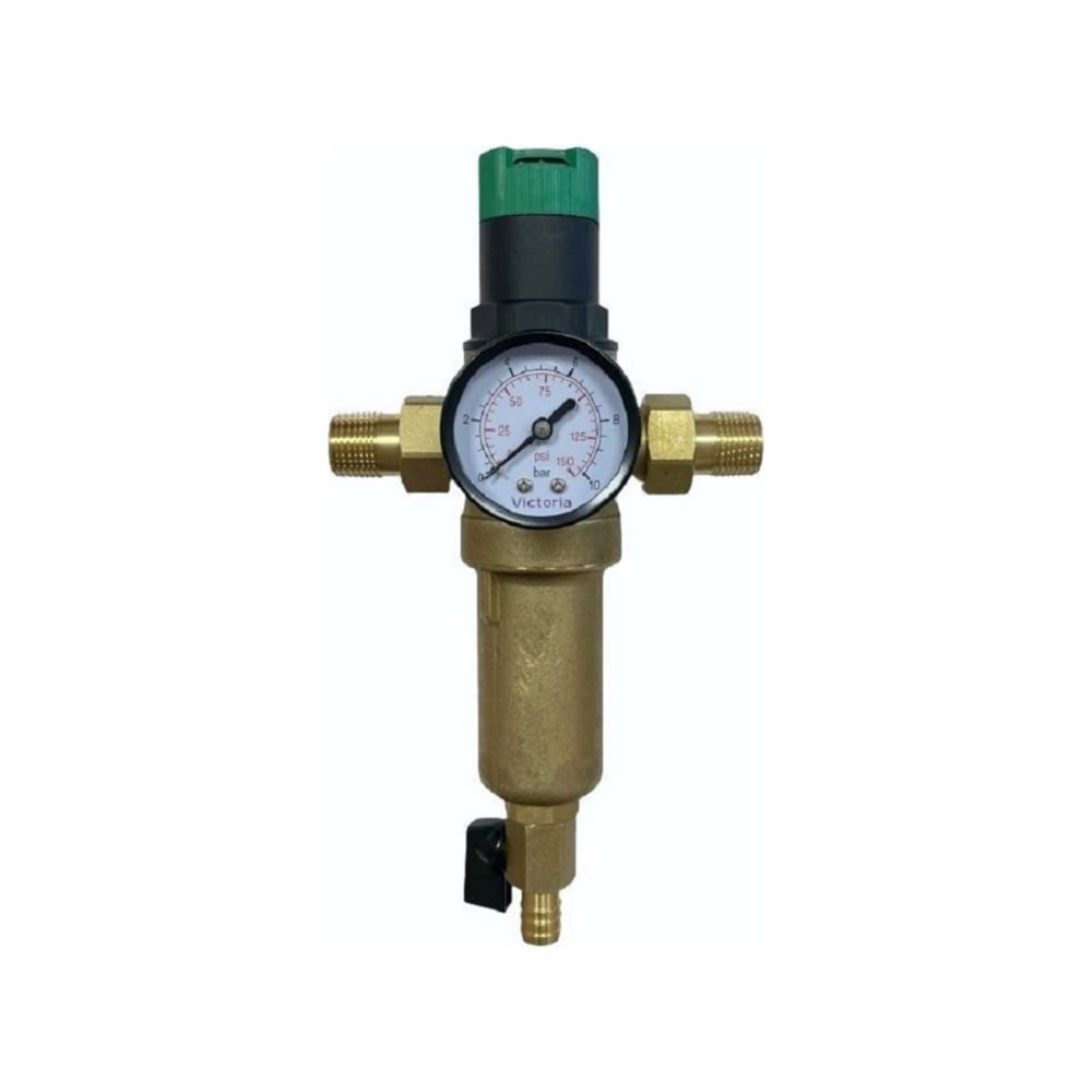 Промывной фильтр с редуктором давления и манометром для горячей воды Victoria 3/4"(тонкая очистка)с американками 27-709