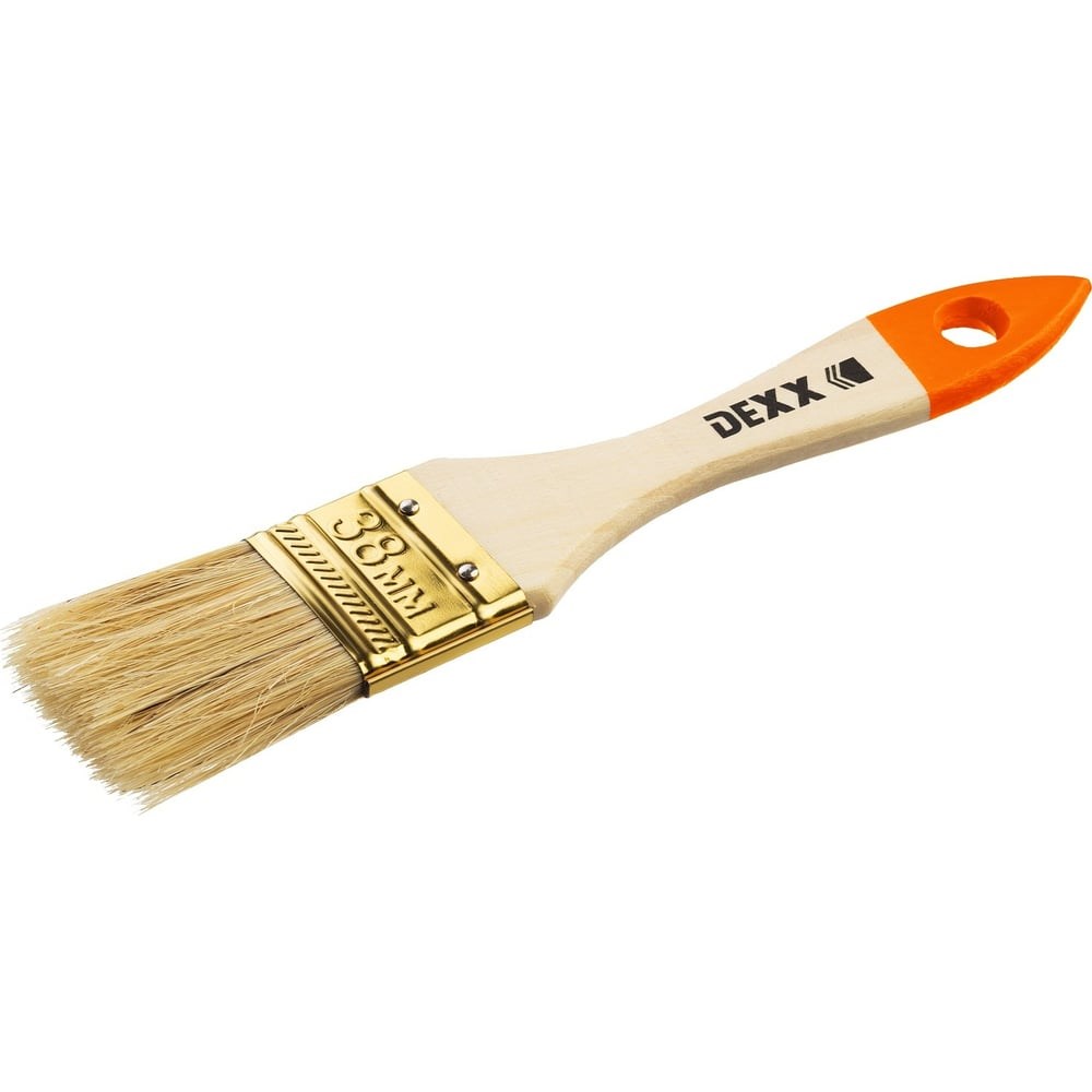 Флейцевая кисть DEXX ПРАКТИК 38мм 0100-038_z02 применяется для нанесения различных красок и лаков. Инструмент обладает щетиной из натуральной шерсти. Щетина закреплена при помощи бандажа из стали. Кисть имеет деревянную рукоятку.