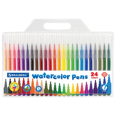 Фломастеры BRAUBERG "PREMIUM", 24 цвета, КЛАССИЧЕСКИЕ, вентилируемый колпачок, ПВХ-упаковка с европодвесом, 151936