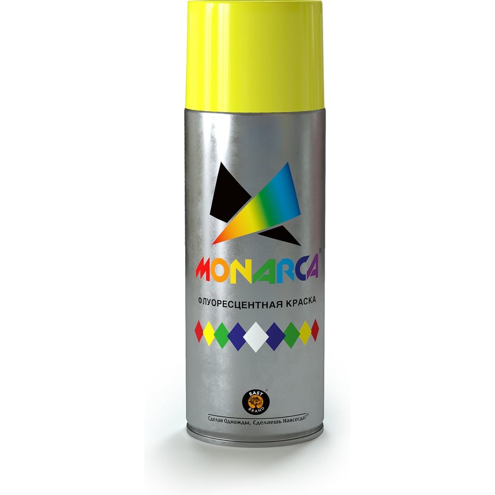 Аэрозольная краска MONARCA флуоресцентная Желтый 41005 со светоотражающей способностью, предназначенная для создания сигнальных и предупредительных эффектов. Равномерно распыляется и не растекается по поверхности. Легко наносится в труднодоступных местах. Стойкая к воздействию внешней среды и УФ излучению. Яркий, насыщенный цвет. Яркие цвета. Для внутренних и внешних работ. Рекомендована для оформления рекламы, вывесок, витрин, спортивного инвентаря и обозначения опасных мест, различных дизайнерских решений. Окрашивает поверхности из дерева, металла, пластика, стекла, камня, бетона, бумаги, картона.