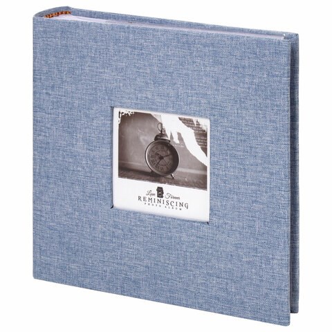 Состоит из 50 бумажных листов размером 15,5х21 см с карманами и вмещает 200 фотографий размером 10х15 см по 2 штуки на странице. Обложка фотоальбома выполнена из текстильного материала - джинсовой ткани. Фотоальбом с книжным переплетом отличается повышенной прочностью и долгим сроком службы. Размер - 22х22 см. Размер окошка под фото на обложке - 8,5х8,5 см.