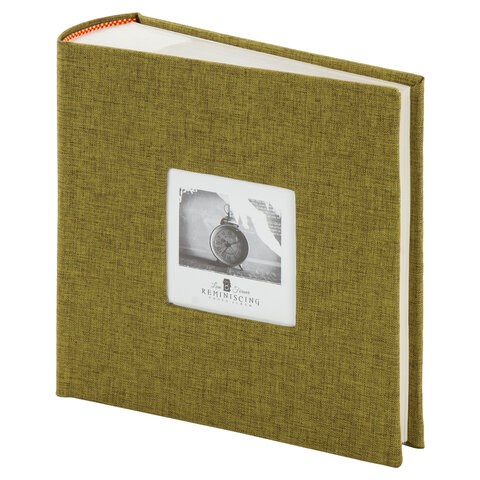 Состоит из 50 бумажных листов размером 15,5х21 см и вмещает 300 фотографий размером 10х15 см. Имеются поля для записей. Обложка фотоальбома выполнена из текстильного материала цвета хаки и декорирована рамкой для фотографии, которую можно заменить по желанию владельца. Фотоальбом с книжным переплетом отличается повышенной прочностью и долгим сроком службы. Размер - 20,7х21,8 см. Размер окошка под фото на обложке - 8,5х8,5 см.