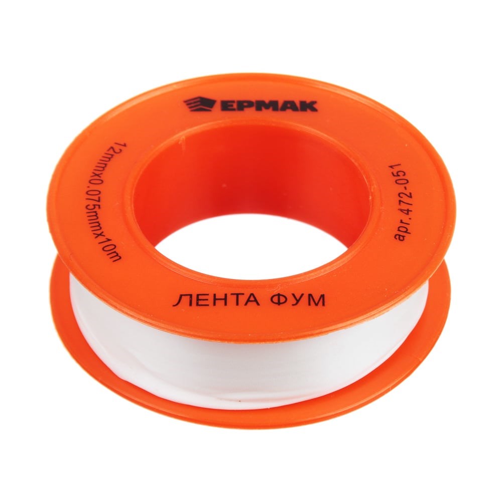 ФУМ лента ЕРМАК 1/2"/12мм х 0,075мм х 10м 472-051 используется в качестве уплотнителя при соединении водопроводных труб, любых резьбовых соединений, а также ремонте различной техники. Продукт сантехнического, общепромышленного назначения, пригоден для трубопроводов жидкостей, газов, неагрессивных к тетрафторэтилену. Герметик пластичный, прочный, химически стойкий, сохраняющий свойства в широком диапазоне температур, монтаж которого несложен даже неспециалисту.