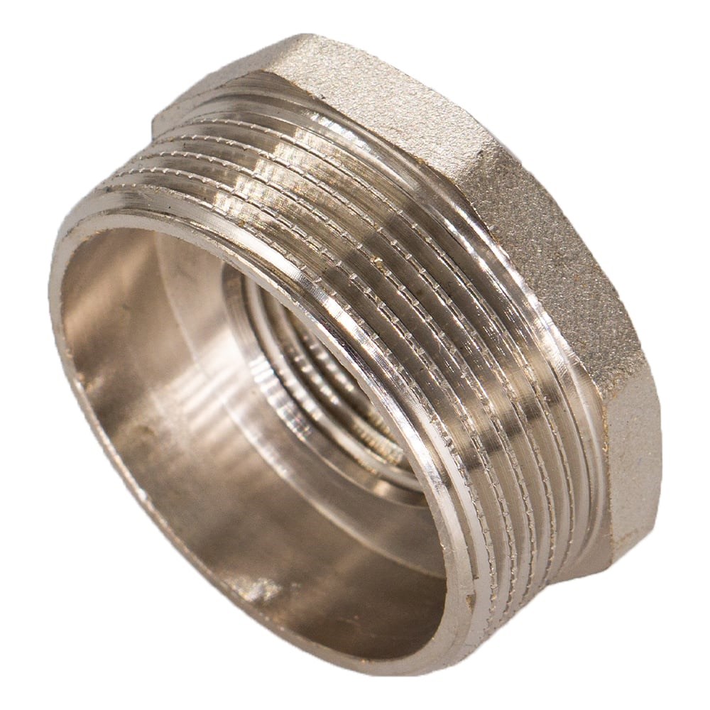 Футорка 2"x1" ш/г CTM - резьбовой фитинг, обеспечивающий соединение труб разного типоразмера, подключение трубопровода к элементу системы с большим диаметром присоединительного патрубка, ремонт (замену) поврежденной резьбы. Футорка изготавливается из горячепрессованной латуни. Дополнительный запас прочности обеспечивается за счёт покрытия никелем, предотвращающим появление коррозии, а также защищающим от механического износа и вредного воздействия агрессивных жидкостей и воздушно-газовых сред. Материал: латунь с никелированным покрытием Резьба: внутренняя/наружная Давление: 16 бар Рабочая температура: от -20°С до +120°С