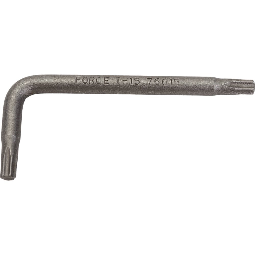 Г-образный ключ-торкс FORCE Т15 76615 предназначен для завинчивания и снятия крепежа, имеющего шлиц TORX. Имеет Г-образную форму. Длина короткого плеча 19 мм, длина длинного плеча 53 мм. Выполнен из высококачественной стали, обладающей стойкостью к большим нагрузкам.