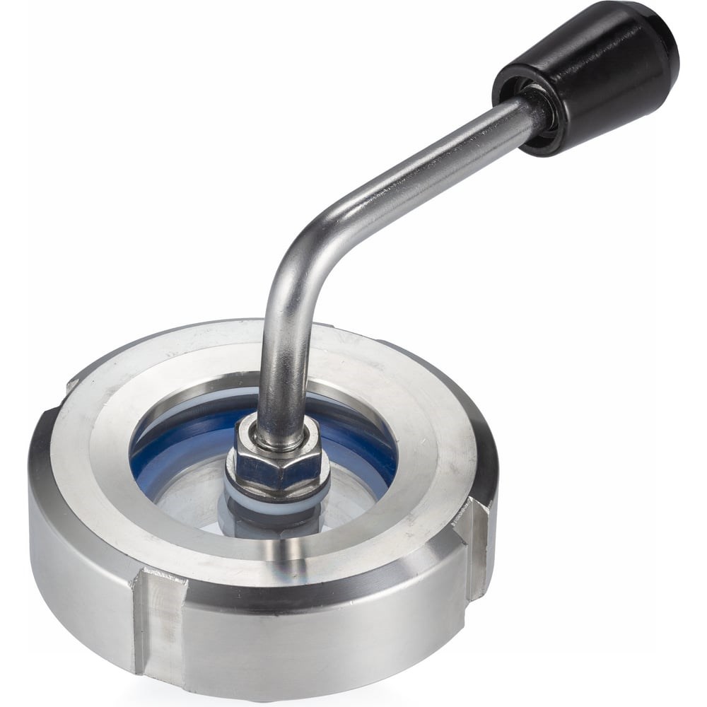 Гаечный диоптр предназначен для визуального контроля качества жидкости внутри трубопроводной системы или емкостей. Состоит из резьбового штуцера под приварку, термостойкого боросиликатного стекла круглой формы, шлицевой гайки и двух уплотнений из силикона, одно устанавливается между стеклом и штуцером, другое между стеклом и гайкой. Муфта приваривается к емкости или трубе, после чего устанавливается стекло с уплотнениями и фиксируется гайкой. Изготовлен по стандарту DIN 11851 из нержавеющей стали AISI 304.Давление до 10 барТемпература от -10 до +150 град