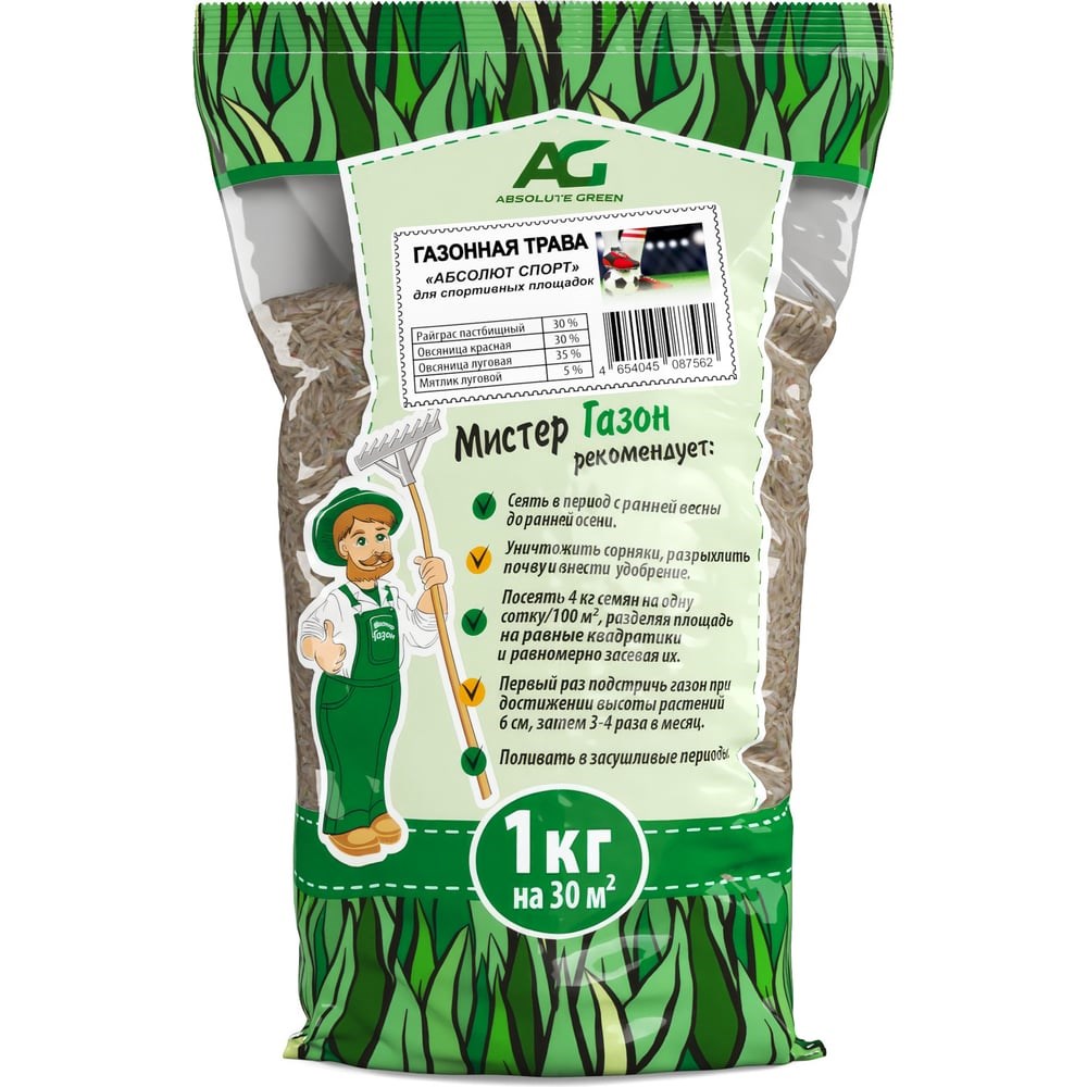 Газонная травосмесь ABSOLUTE GREEN Абсолют Спорт 1 кг 00000000328 прекрасно подходит для спортивных площадок. За счет тщательно подобранному сочетания райграса пастбищного, овсяницы красной и мятлика лугового обладает высокой устойчивостью к вытаптыванию и частому скашиванию, средним темпом роста, а также придает мягкость и эстетическую декоративность газону. Норма высева 4-5 кг на 100 м2.