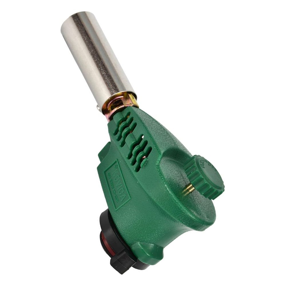 Пьезозажигалка Профессионал зеленая 07391 использующаяся в быту и для приготовления пищи: для прогрева замерзших жидкостей в водопроводных и прочих магистралях, для работы с медными припоями, для борьбы с грибком и уничтожения насекомых обитающих в скрытых полостях, для придания поверхностям деревянных изделий декоративного вида, для удаления старой краски. Автоматический пьезоэлектрический розжиг одним нажатием.