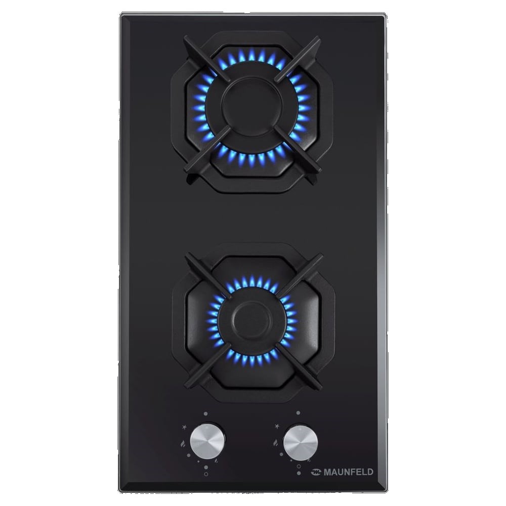 Дизайнерская компактная газовая варочная панель шириной 30 см поместится даже на небольшой кухне. Она не только встраивается в столешницу, но и может использоваться как отдельностоящая плита, благодаря 4 ножкам-опорам, которые идут в комплекте. Работает от магистрального газа и газа в баллоне (тип G30). Для этого достаточно поставить специальные жиклеры французской фирмы SOURDILLON. Панель выполнена из закаленного стекла черного цвета толщиной 8 мм с фацетом по периметру. В данной модели установлены высококачественные итальянские горелки SABAF. Две стандартные конфорки разного диаметра с мощностью 1700 Вт и 2600 Вт спроектированы таким образом, что огонь не перегревает ни чугунные решетки, ни ручки управления. Регулирование подачи газа и электроподжиг конфорок происходит с помощью поворотных полнотелых цельнометаллических ручек. Для простоты использования около каждой нанесены информационные изображения: используемая конфорка, подача газа выключена, электроподжиг, максимальное пламя и минимальное пламя. Восьмиугольные чугунные подставки – это запатентованное изобретение MAUNFELD, прочные и долговечные. Система газ-контроля надежно защищает бытовой прибор от утечек газа при неожиданном затухании конфорки.