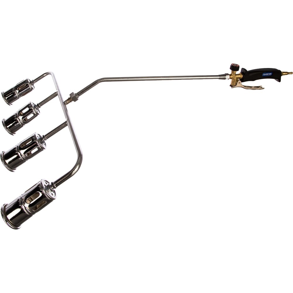 Газовоздушная горелка BRIMA ГВ-4РВТ-850, 9879 применяется в кровельных, гидроизоляционных работах, для нагревания металла и сушки литейных форм.Модель снабжена четырьмя соплами по 60 мм в диаметре, что дает возможность расширить площадь выполнения операций.Подача газа осуществляется с помощью вентиля и плавно регулируется рычагом на рукоятке. Длина мундштука 850 мм позволяет обрабатывать труднодоступные места на расстоянии от пользователя.