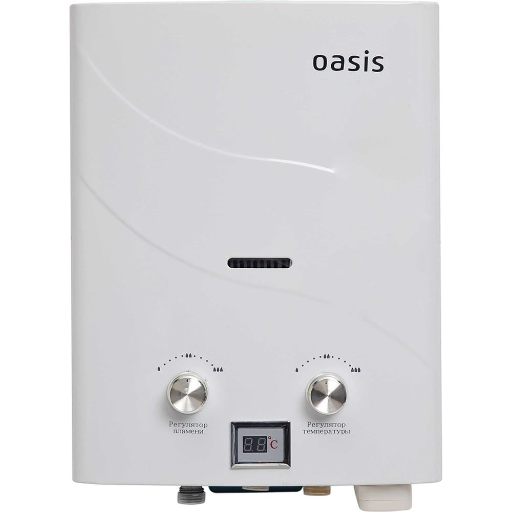 Газовый проточный водонагреватель бездымоходный «Oasis» B - 12W предназначен для обеспечения горячего водоснабжения там, где его нет. Отсутствие дымохода и компактные размеры позволяют поставить его практически в любой дом. Водонагреватель позволяет получить поток воды до 5 л/мин. Простое управление. Механическое управление простое и интуитивно понятное. Автоматический электронный поджиг самостоятельно подпаливает газ, нужно просто повернуть кран с горячей водой. Цифровой индикатор показывает температуру воды, вытекающей из крана, что позволяет более тонко настроить степень нагрева. Всё продумано. Поджиг работает от батареек, что помогает избежать неудобств при отключении электричества. Отсутствие постоянно горящего запальника экономит до 70м^3 газа в год. Ионизационный электрод контроля пламени автоматически отключает подачу газа, если горелка гаснет. Теплообменник имеет специальное покрытие, которое обеспечивает дополнительную защиту от окисления. Газовые проточные водонагреватели «Oasis» - комфорт и надёжность в одном устройстве.