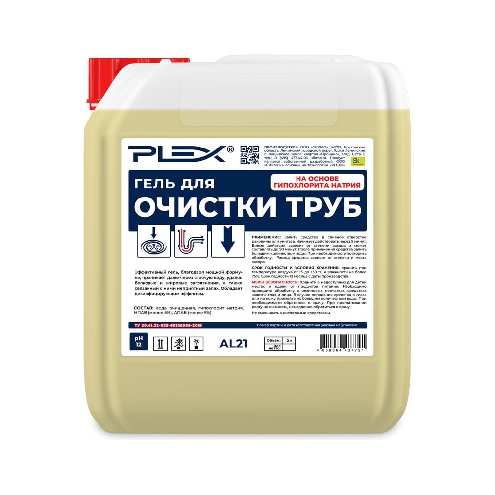 Гель для прочистки засоров в канализационных трубах PLEX ИНТЕР