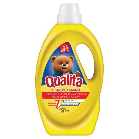 Гель для стирки универсальный 1 л, QUALITA, для всех типов тканей, концентрат, 14139