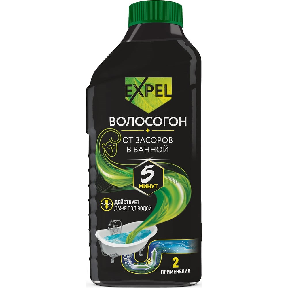 Когда засоры в ванной становятся реальной проблемой, на помощь приходит профессиональное средство для прочистки труб – Гель для устранения засоров от волос EXPEL ВОЛОСОГОН 500 мл TS00016! Благодаря специально разработанному составу на основе композиции тройного действия ОКИСЛИТЕЛЬ + ЩЁЛОЧЬ +ПАВы, достигается высокая эффективность средства и его исключительное быстродействие. Эта 3-компонентная система целенаправленно разрушает структуру кератина – белка, которому волосы обязаны своей прочностью – на молекулярном уровне. В результате под воздействием активных веществ волосы становятся хрупкими и ломкими, распадаются на микрочастицы и легко смываются водой.Всего за 5-10 минут волосяная пробка полностью растворяется и засор уходит. Гель EXPEL ВОЛОСОГОН эффективно справляется с засорами даже в стоячей воде.С EXPEL засоры быстро улетучиваются • Благодаря густой плотной консистенции проникает к источнику засора даже через стоячую воду • Эффективно растворяет волосяную пробку всего за 5 минут! • Рассчитан на 2 применения: ½ флакона = 1 засор! • Безопасен для труб