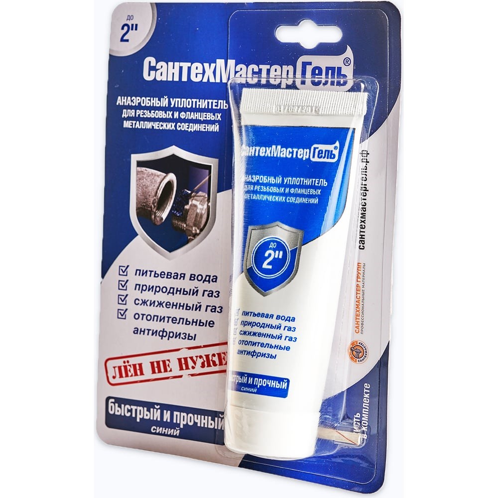 Гель СантехМастер Синий, тюбик 60 г, блистер 04019 — это резьбовой герметик для сантехники со средней степенью фиксации соединения. Данный состав рекомендован к использованию для герметизации металлических резьб, фитингов и фланцев. Используется для соединений диаметром до 2". Соединение, собранное на данный гель поддается демонтажу с использованием инструмента. Время полимеризации: 10 - 15 мин. Температура монтажа: от + 15 °С Рабочая температура: от - 60 до + 150°C Демонтаж: Среднее усилие Области применения: Природный газ Сжиженный газ Холодная и горячая вода Питьевая вода Сжатый воздух Бензины и дизтопливо Отопительные антифризы